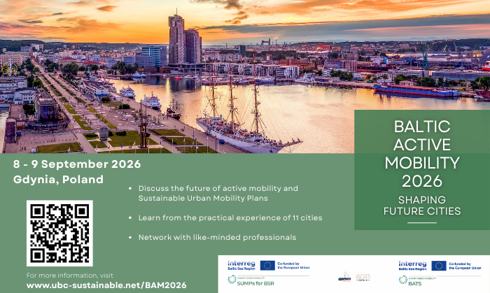 The event is organised by the Interreg Baltic Sea Region projects SUMPs for BSR and BATS , supporting cities in accelerating the transition towards active and sustainable urban mobility.