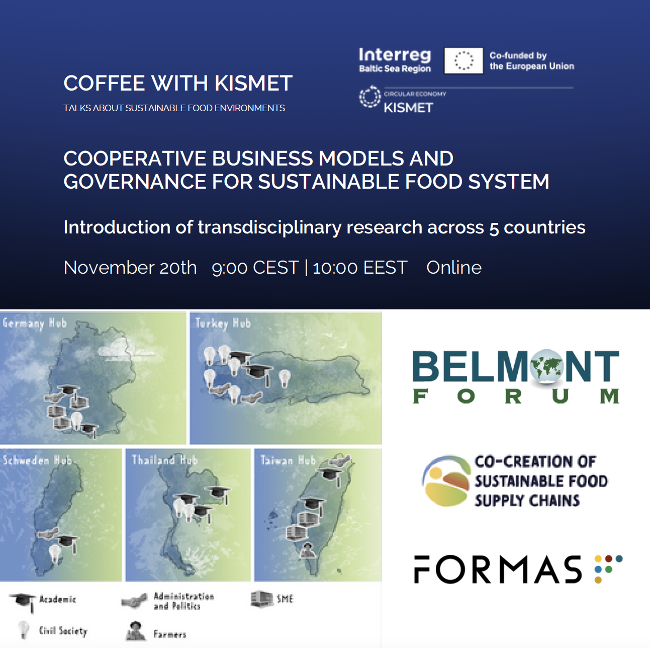 In this Coffee with KISMET webinar, members from the Belmont forum project “Co-creation of Sustainable Food Supply Chains through Cooperative Business Models and Governance” (CO-SFSC) will provide an overview of their transdisciplinary research, which spans across the countries of Germany, Sweden, Turkey, Thailand and Taiwan.