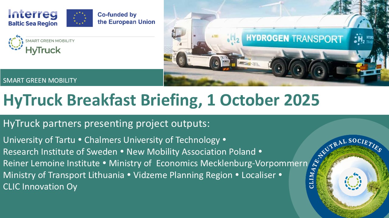 We are pleased to invite you to HyTruck Breakfast Briefing, which will be held as an online Teams event on Wednesday 1st of October 2025 from 09:00 to 10:15 (CET).