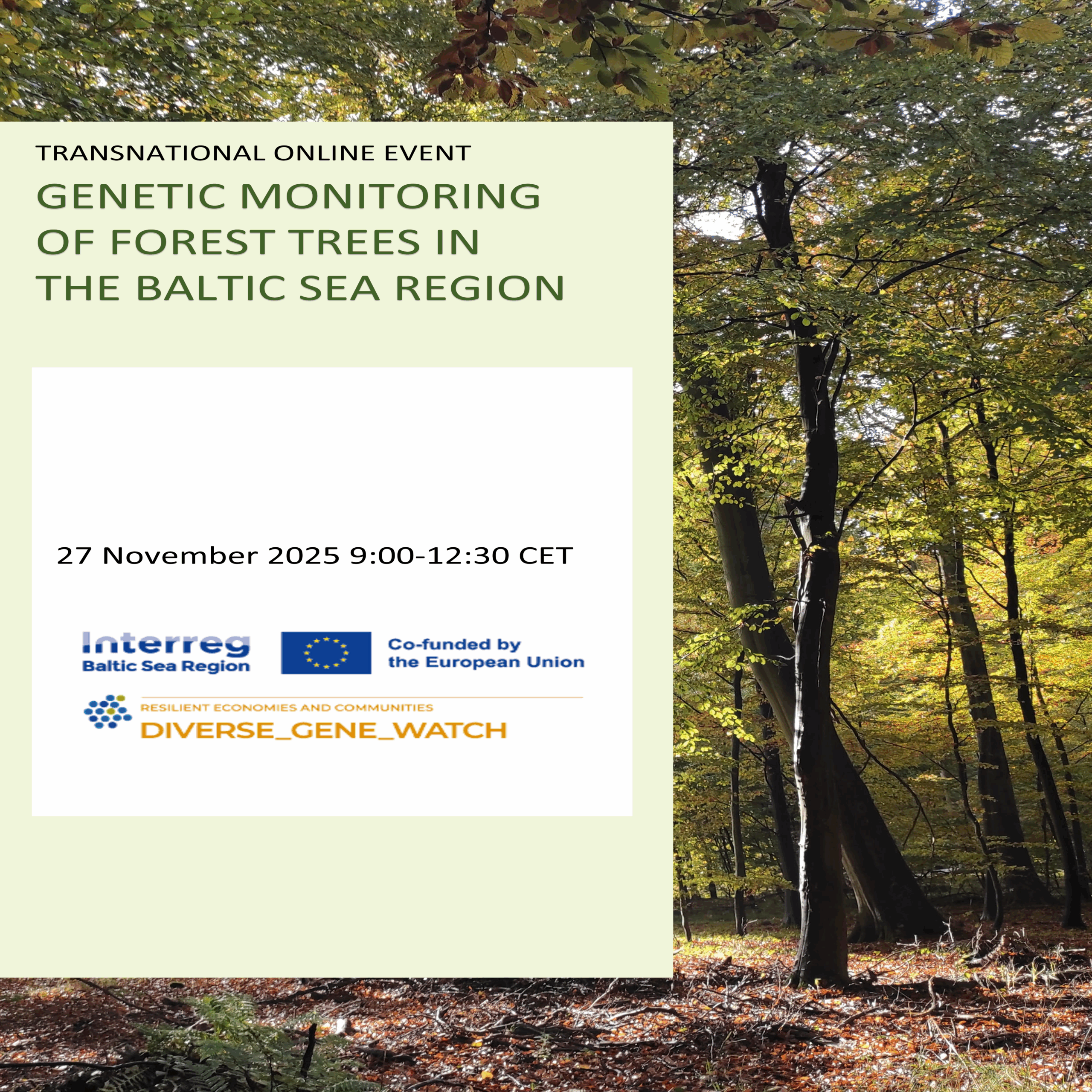 Genetic diversity is a crucial component of biodiversity. This event addresses solutions for cost-effective monitoring of forest genetic resources (FGR) in the Baltic Sea Region (BSR) using novel technologies.