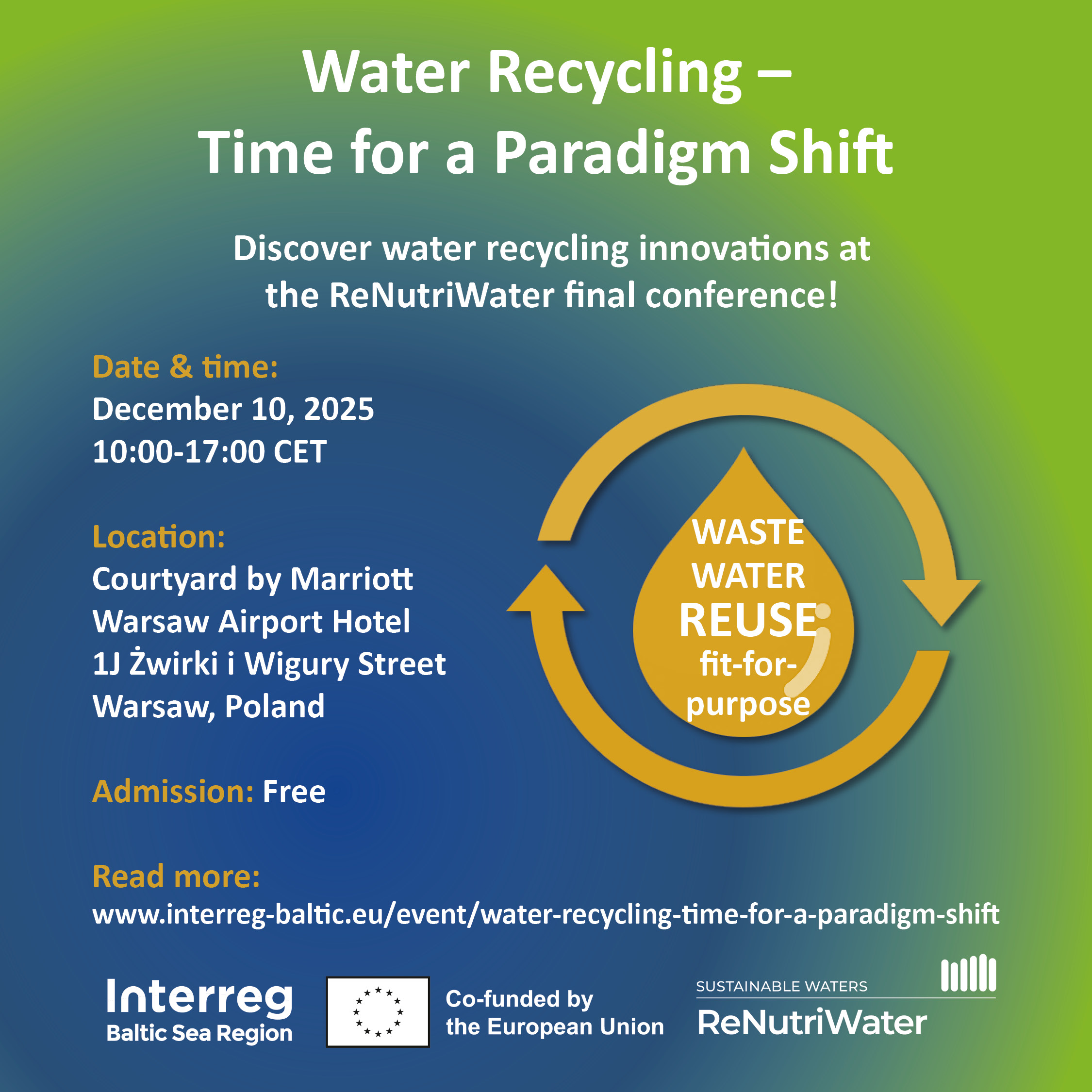 Join us for a free international conference showcasing the results of the ReNutriWater project, an initiative exploring water recovery from wastewater. This is a unique opportunity to discover how modern technologies can transform wastewater into a sustainable resource and help address the growing global water crisis.