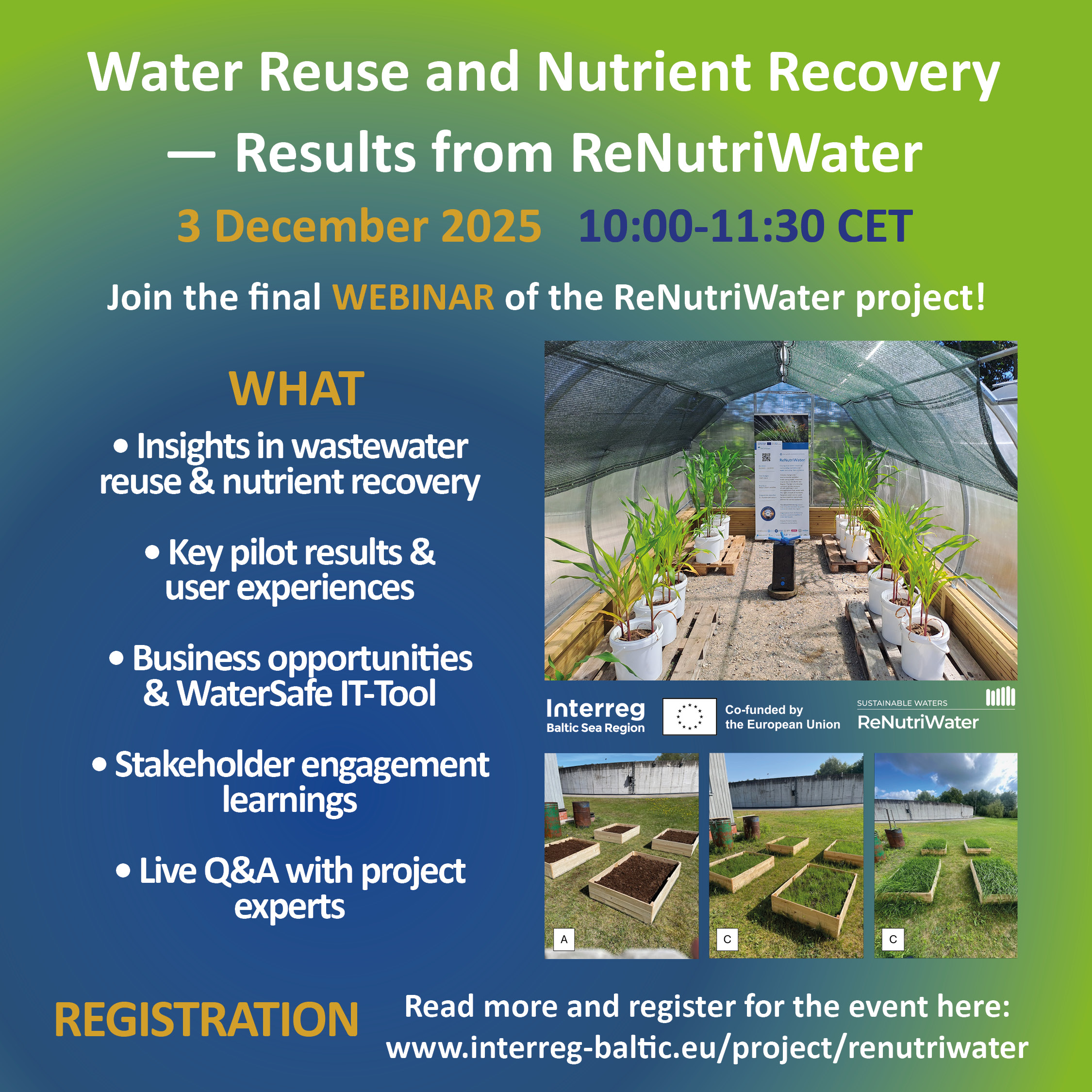 Join us for this concluding webinar of the ReNutriWater project, featuring experts and researchers directly involved in the project, who will share their insights on innovative approaches to water reuse and nutrient recovery in support of a more circular water economy.
