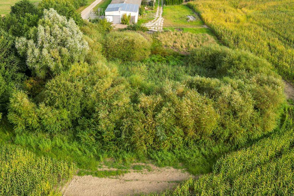The site features a wide, open water surface framed by a natural border of willow trees. Designed with varying water depths, the wetland provides a specialized habitat for amphibians and diverse aquatic life. Utilizing the natural slope of the surrounding fields, this former depression now functions as a vital ecological buffer and a hands-on educational space where the synergy between farming and nature conservation becomes visible.