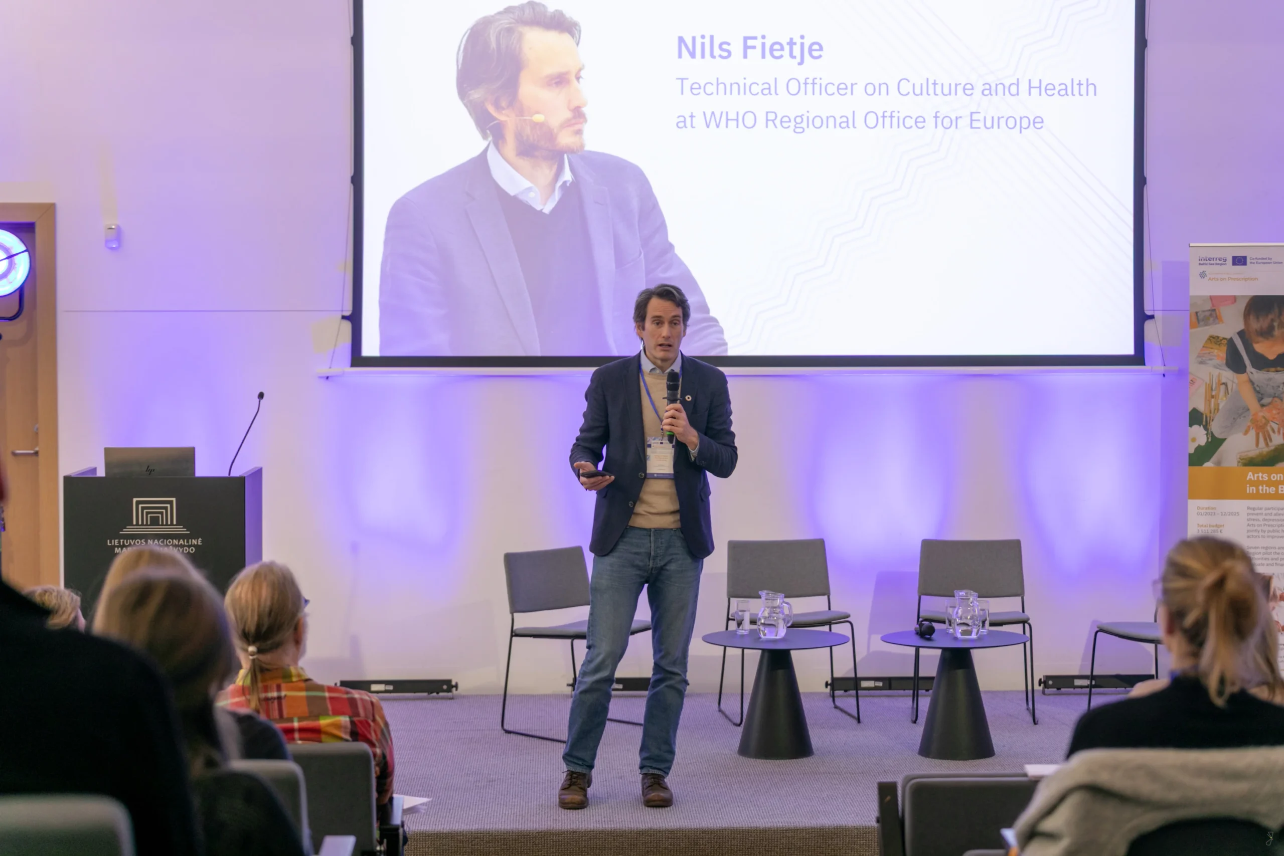 Moderated by Nils Fietje from the WHO Regional Office for Europe and hosted by the Estonian improv theatre Ruutu10, the programme intentionally combined policy dialogue with artistic expression. This balance reflected a core message of the event: participation in arts and culture is a meaningful health behaviour, with positive effects on mental wellbeing comparable to physical activity.