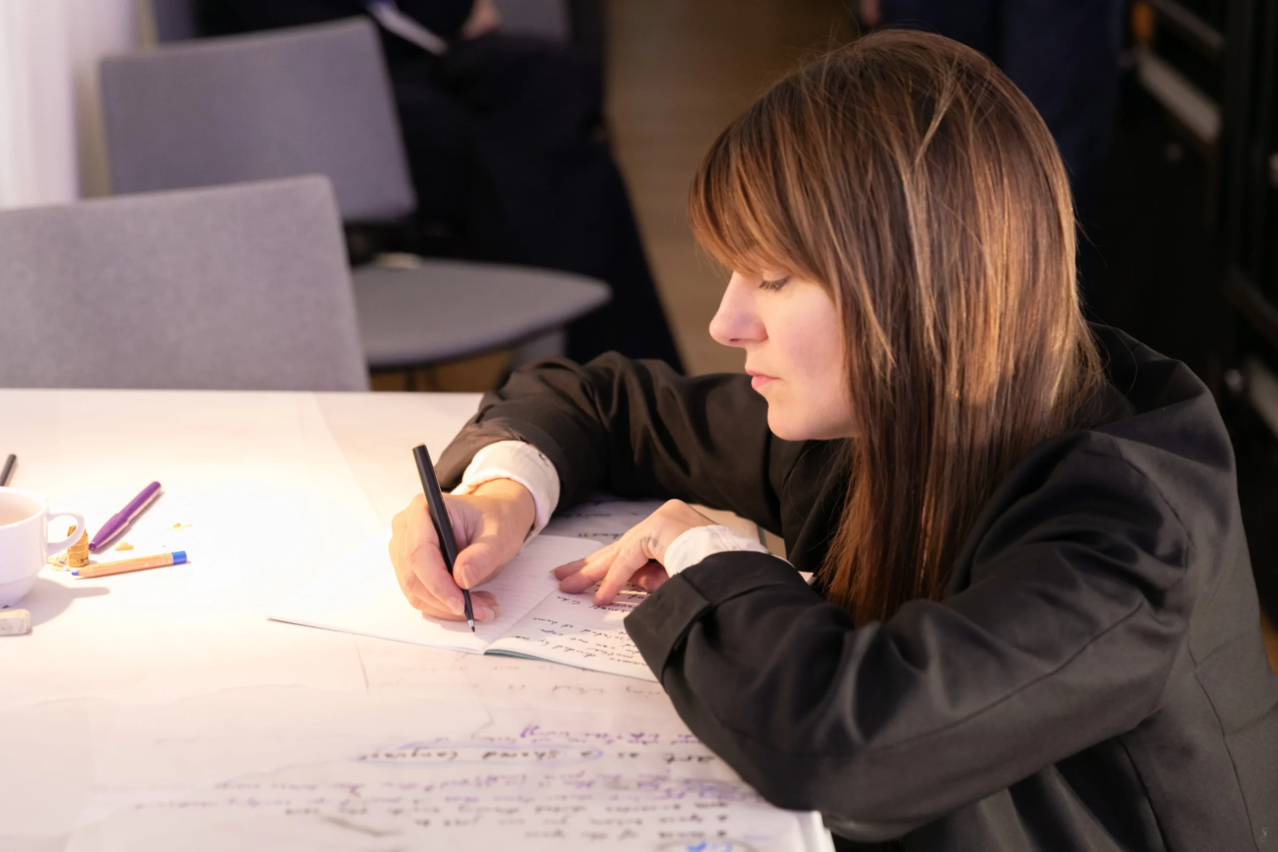 Throughout the day, participants took part in guided artistic activities, including music, movement, drawing, and poetry. These sessions – led by artists from Latvia, Denmark, and Ireland – demonstrated how inclusive and well-facilitated cultural experiences can create safe spaces, spark creativity, and support mental wellbeing, even for those without prior artistic experience: moving and playing instruments with Latvian musician Helēna Kozlova; traveling through human emotions and expressing them in drawings facilitated by Karsten Auerbach from Denmark; and even becoming the source of a poem written by Irish/Danish artist Madeleine Kate McGowan as a reflection of the day.