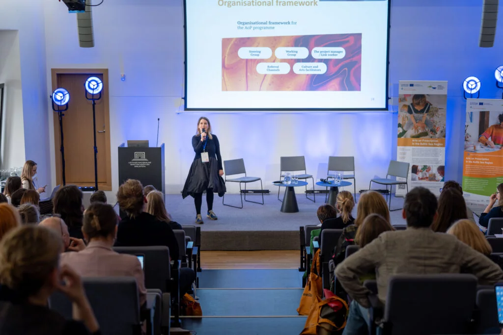Partners from Denmark, Germany, Latvia, Poland, and Sweden presented insights from three years of AoP pilot programmes across the Baltic Sea Region. Examples included Latvia’s use of cultural heritage sites to reduce anxiety, Sweden’s focus on long-term sick individuals, Poland’s co-designed approach for young adults, Germany’s inclusive model integrating participants into existing cultural courses, and Denmark’s efforts to build bridges between the health and cultural sectors through national networking.
