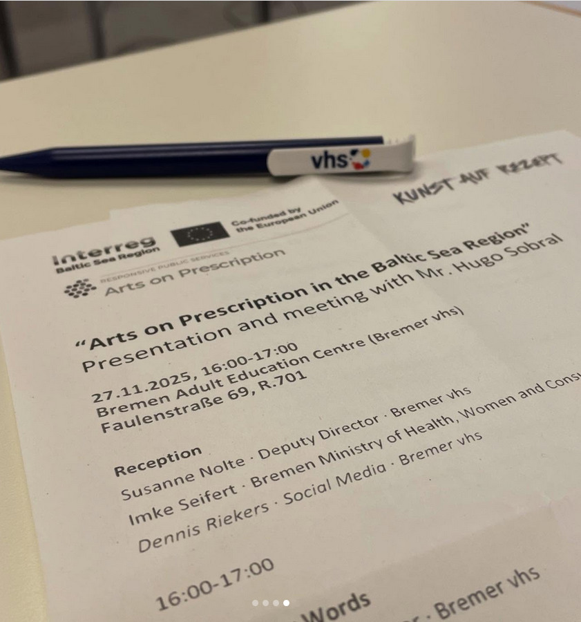 Hugo Sobral left Bremen with valuable and very personal impressions of the Arts on Prescription project. His visit sends a positive and encouraging signal for the continued development of European cooperation and future joint initiatives within the Interreg framework.