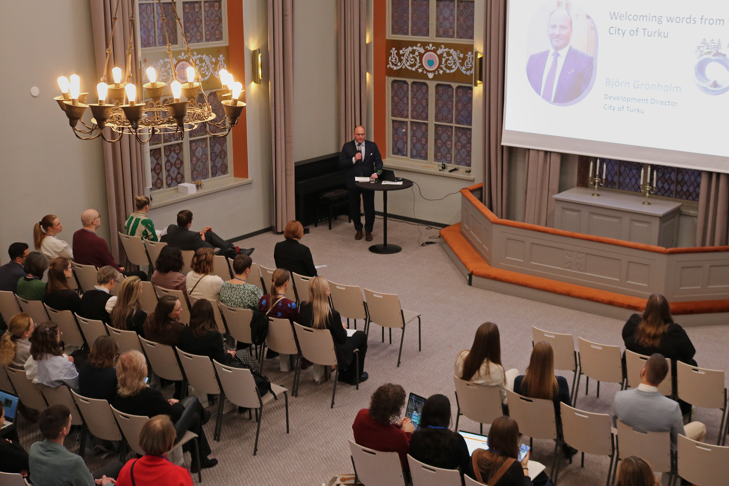 Björn Grönholm, Development Director, City of Turku delivering the presentation. Photo by Union of the Baltic Cities Sustainable Cities Commission.