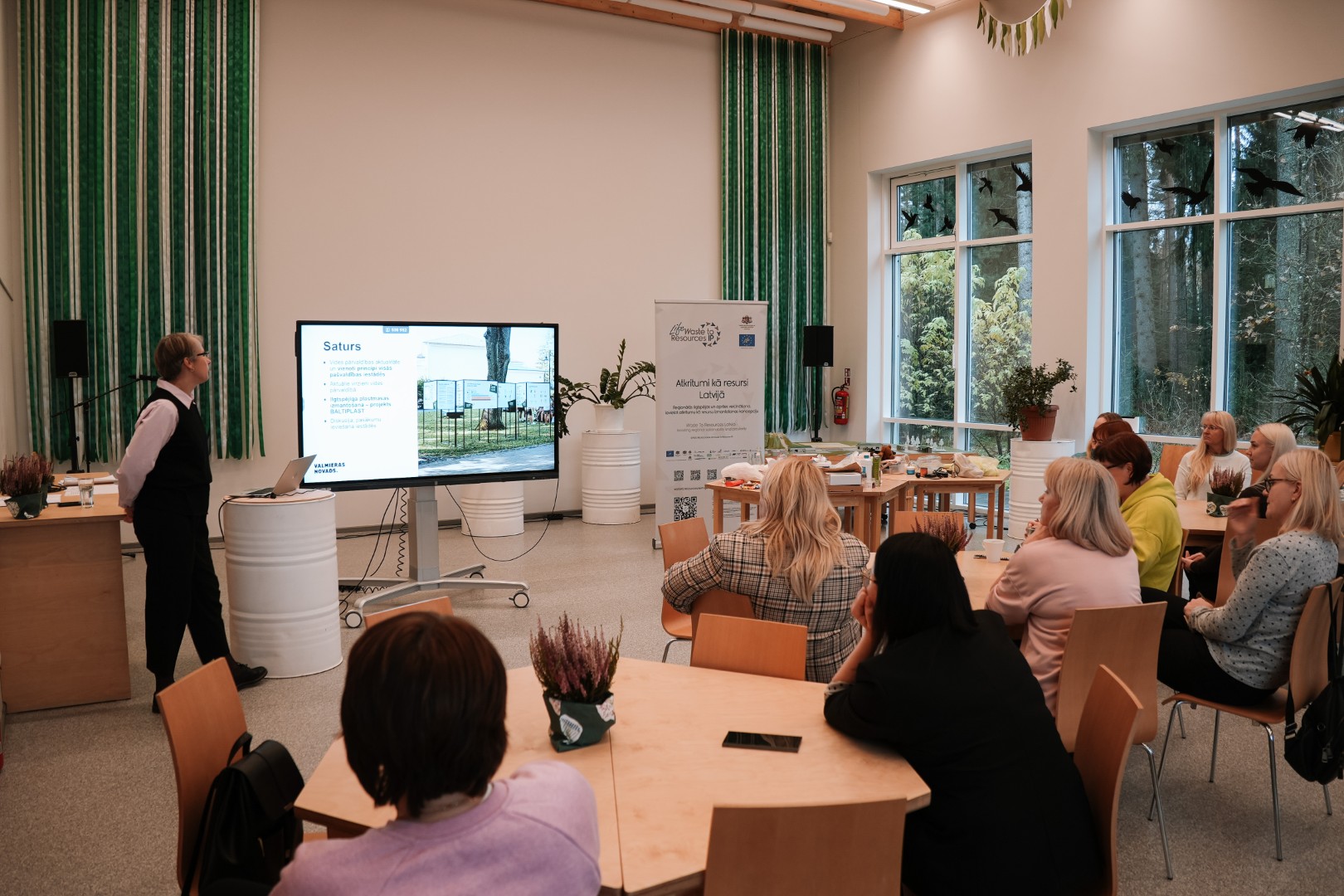 At the end of October and in November, Valmiera Municipality Government employees attended a total of four training sessions at the URDA Nature and Technology Park to expand their knowledge of waste and waste management issues and discuss the development of environmental management in the municipality. The aim of the training was to assess the current situation in environmental management in the municipality and to set goals for the future, focusing also on the consumption of various plastic products in everyday life and at work. One of the meetings was specifically dedicated to the organization of environmentally friendly events.