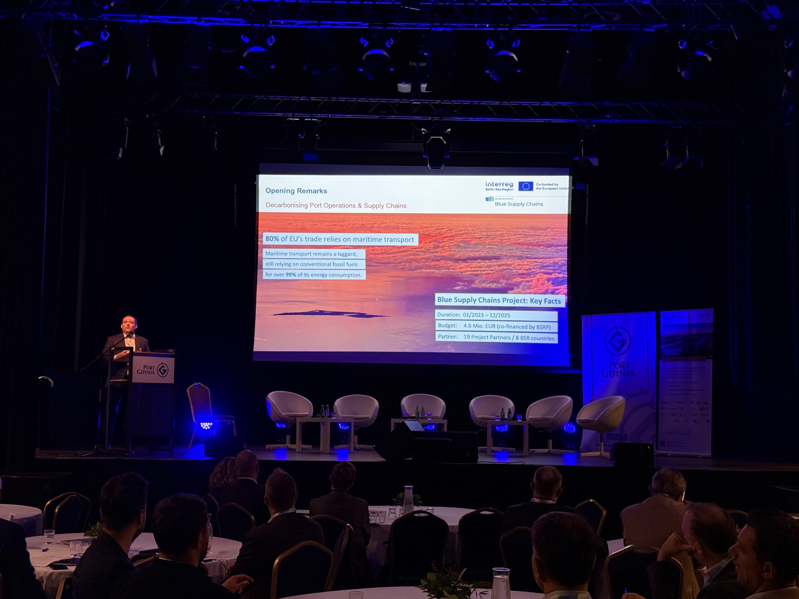 The BSC Final Conference took place in the Port of Gdynia Concert Hall, embedded within the larger Baltic Ports for Climate event. The session “Decarbonising Port Operations and Supply Chains – Insights from the Blue Supply Chains Project” was moderated by Stefan Breitenbach (Port of Hamburg Marketing).