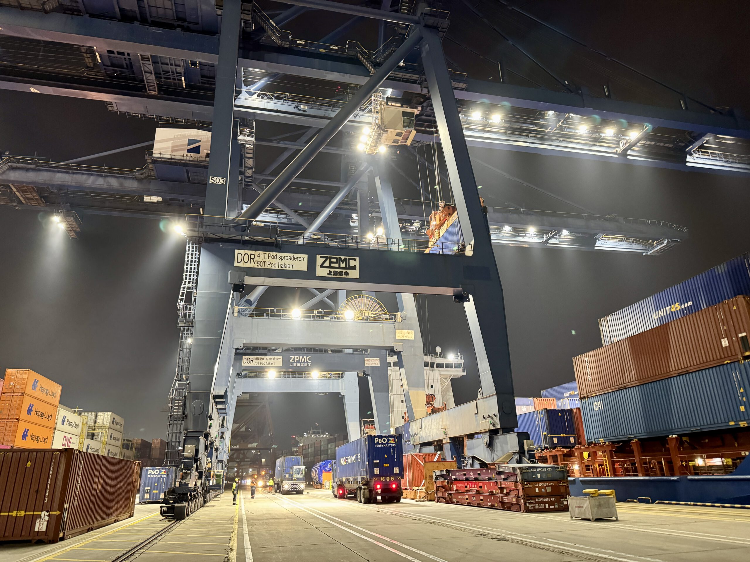 The study visit began at the Gdynia Container Terminal, where Mikołaj Magiełka (GCT, member of CK Hutchison Holdings) guided the group through the container yards during a bus tour, followed by a stop to observe the retrofitted RTG crane in live operation. Despite the late hour, the visit offered a clear and practical look at the equipment implemented within the BSC project.