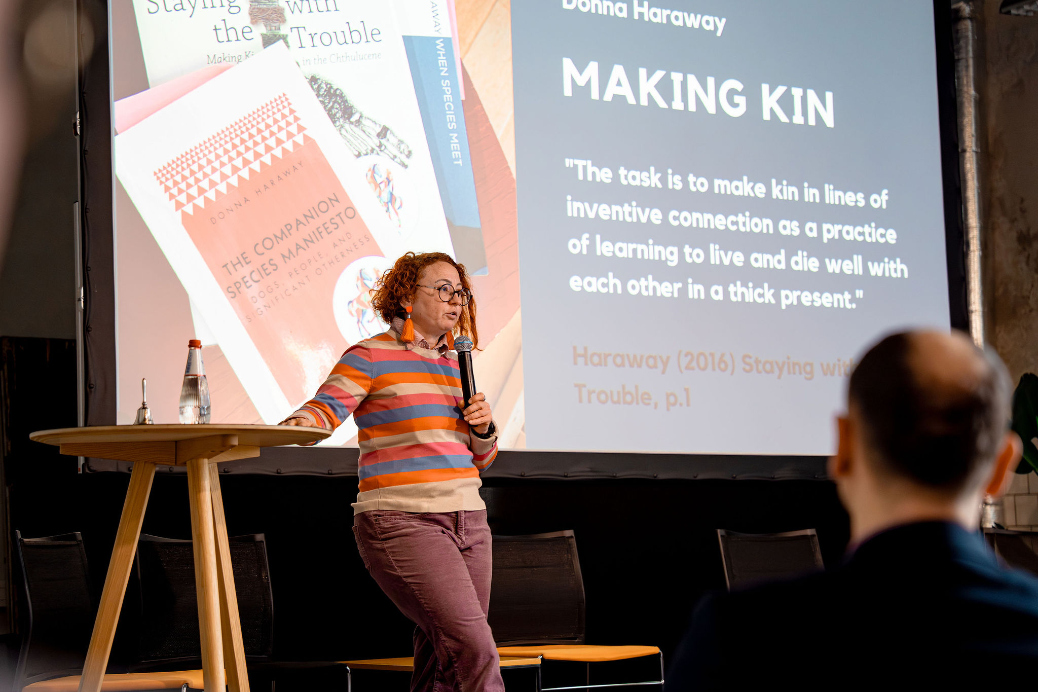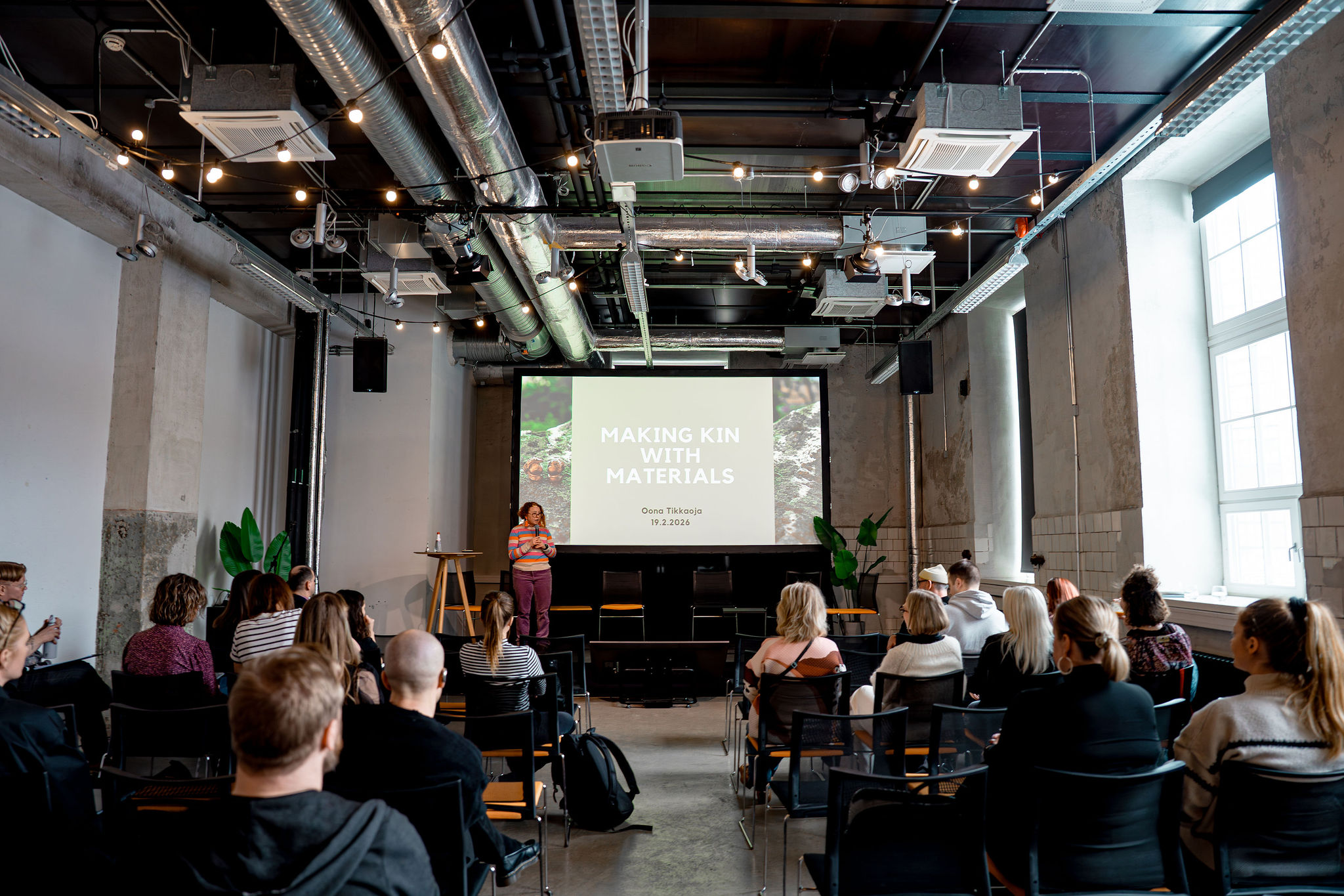 The keynote “Making Kin with Materials” by Oona Tikkaoja of Humak University of Applied Sciences offered a philosophical perspective on circularity. It invited the audience to rethink their relationship with materials – shifting the focus toward production methods, value creation and responsibility towards both the planet and the materials used within creative practice.