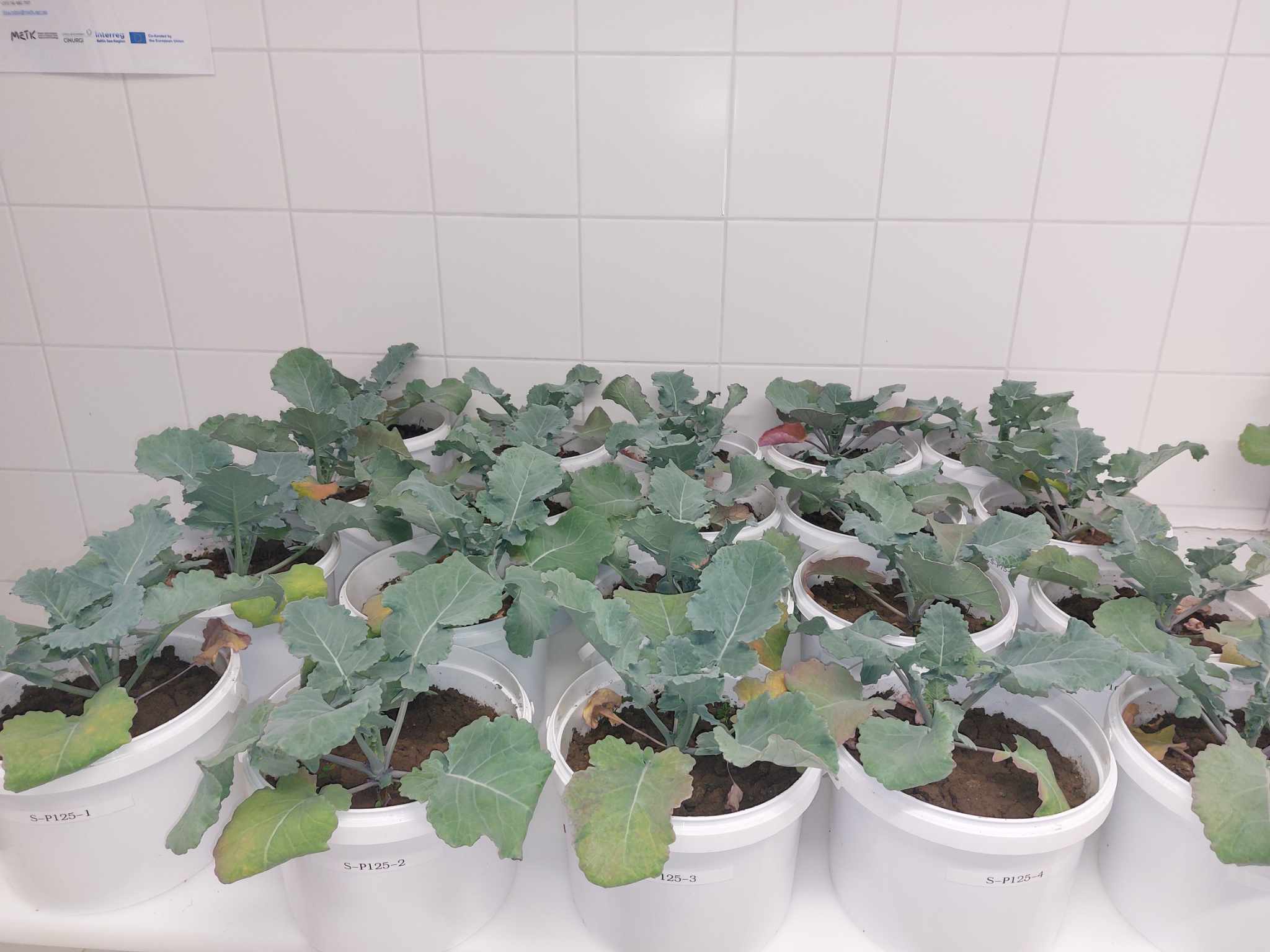 From October 2024 to February 2025 Dr. Edesi cared for 30 pots and their contents. The oilseed rape was planted in 3 L pots filled with silty loam soil, which was treated with struvite or a reference substance of mineral phosphorus. The pots treated with struvite received either 17, 25, 34 or 42 mg of phosphorus per 1kg of dry soil. The experiment also included a phosphorus-free control treatment sample.
