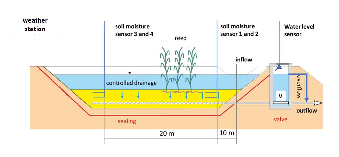 Two infiltration basins were selected as pilot sites. Each site is equipped with soil moisture sensors at two depths (10 and 30 cm) and water level sensors in the manholes to measure inflow. Furthermore, one weather station is placed in the area for local climate data. All devices transmit data via LoRaWAN, allowing long-range, low-energy communication suitable for distributed NBS. Sensor data will later be compared with digital manual inspections to assess how well low-cost sensors can support municipal monitoring routines.