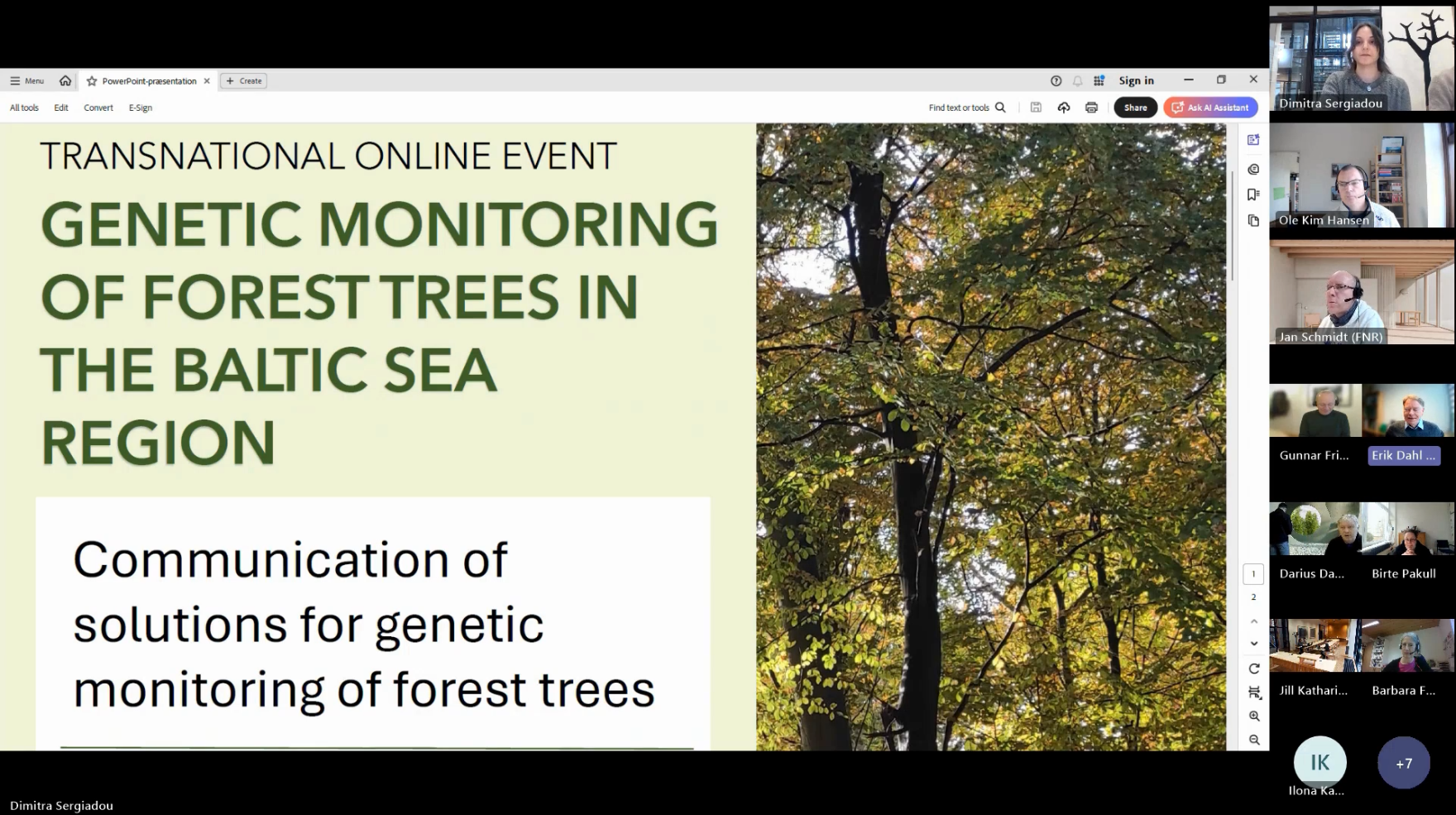 On 27 November 2025, the University of Copenhagen hosted a transnational online event under the Interreg Baltic Sea Region project DIVERSE_GENE_WATCH, focusing on solutions for genetic monitoring of forest trees across the Baltic Sea Region. The event was opened by Erik Dahl Kjær (University of Copenhagen) and moderated through its sessions by Dimitra Sergiadou (University of Copenhagen).