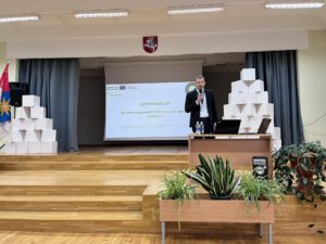 Domas Jankevičius, a representative from Panevėžys District Municipality, delivered an engaging presentation to an audience of approximately 126 participants, including students, academics, and small and medium-sized enterprises (SMEs). The presentation highlighted the project’s goals, solutions, and its potential impact on energy efficiency.
