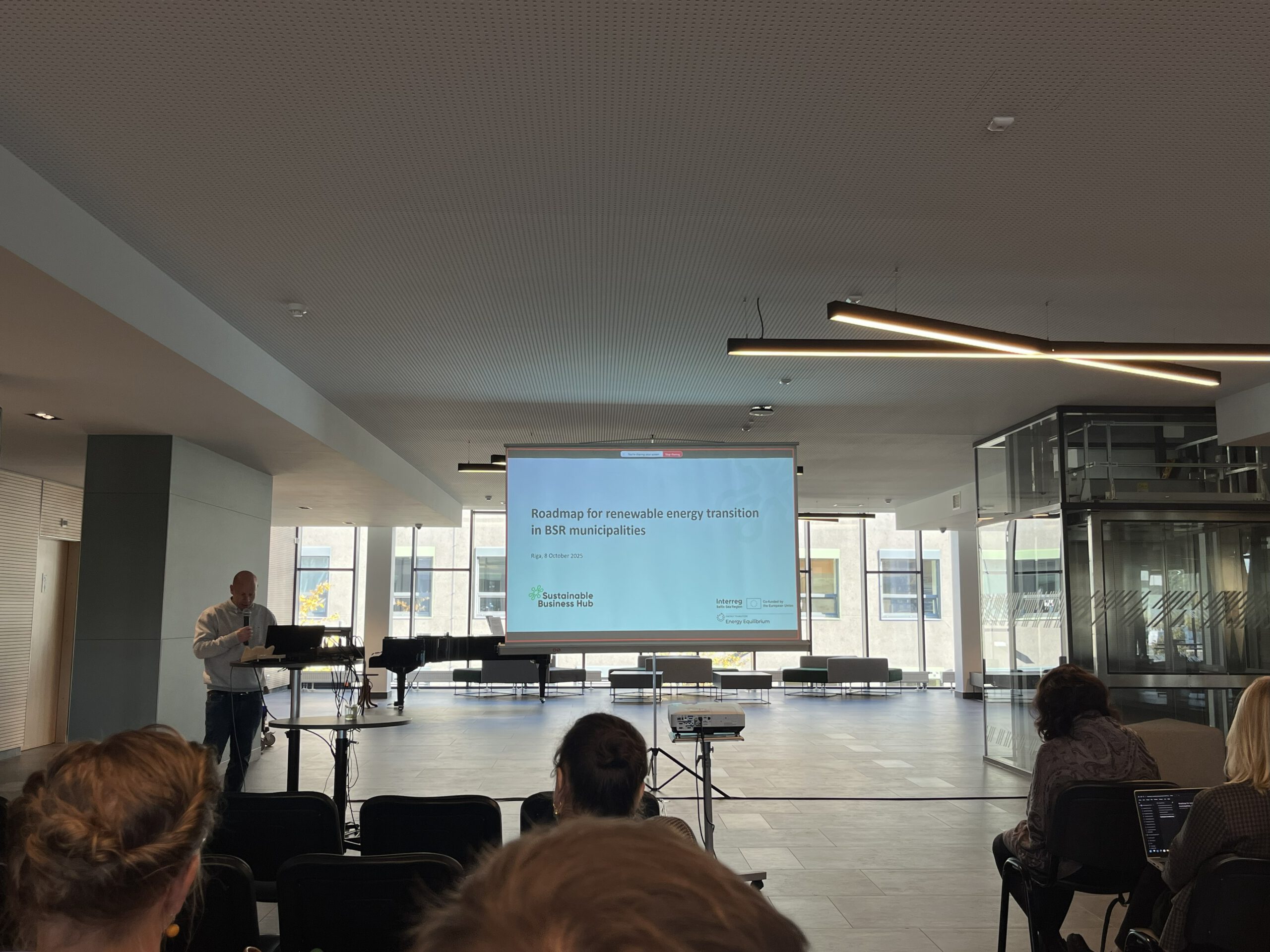 A major focus of the seminar was the essential role of municipalities in advancing renewable energy and climate-neutral solutions. Representatives from Liepāja, Kuldīga, and Tomelilla municipalities shared their experiences on implementing climate strategies, scaling renewable energy projects, and using data-driven tools to guide local decision-making.
