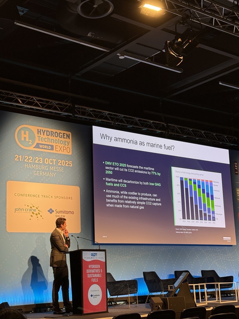 From 21–23 October, H2Deri@BSP participated in the Hydrogen World Expo at Hamburg, engaging with stakeholders at both congress sessions and the exhibition. The lead partner attended sessions on topics including Hydrogen & Carbon Capture Synergies, Hydrogen Ports and Infrastructure, the Port of Hamburg hydrogen ecosystem, Port of Antwerp-Bruges as a hydrogen and CO₂ hub, North Sea Powerhouse development, integrated ammonia technologies, and safe NH₃ bunkering in Northern European ports. Participation allowed the project to share knowledge, explore collaboration opportunities, and strengthen regional and European networks in hydrogen and ammonia applications.