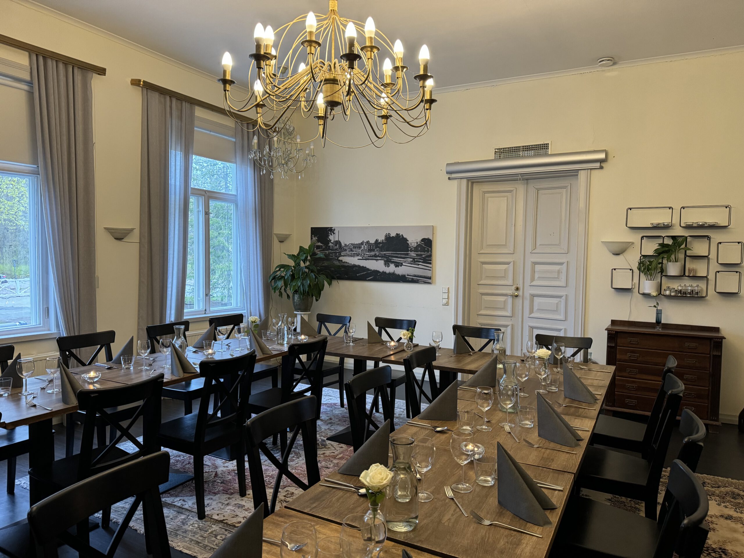 The eventful day was rounded off with a dinner at the Main Manor. The hotel owner of Strömfors Bed & Bistro, Katja Euro, welcomed us officially and introduced the menu, which comprised morel soup as an appetizer and arctic char for the main course. The meal was rounded off with the most delicate chocolate cake.