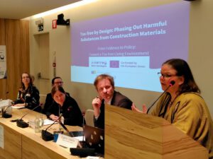 A key focus of the session was the Swedish Byggvarubedömningen (BVB) system, an established tool for assessing and promoting safer building materials. Presenters highlighted how BVB enables municipalities, architects, and developers to make more informed choices by providing independent evaluations of chemical content and environmental performance. The system was showcased as an example of how structured, evidence-based tools can support policy goals and help mainstream non-toxic construction practices across Europe.