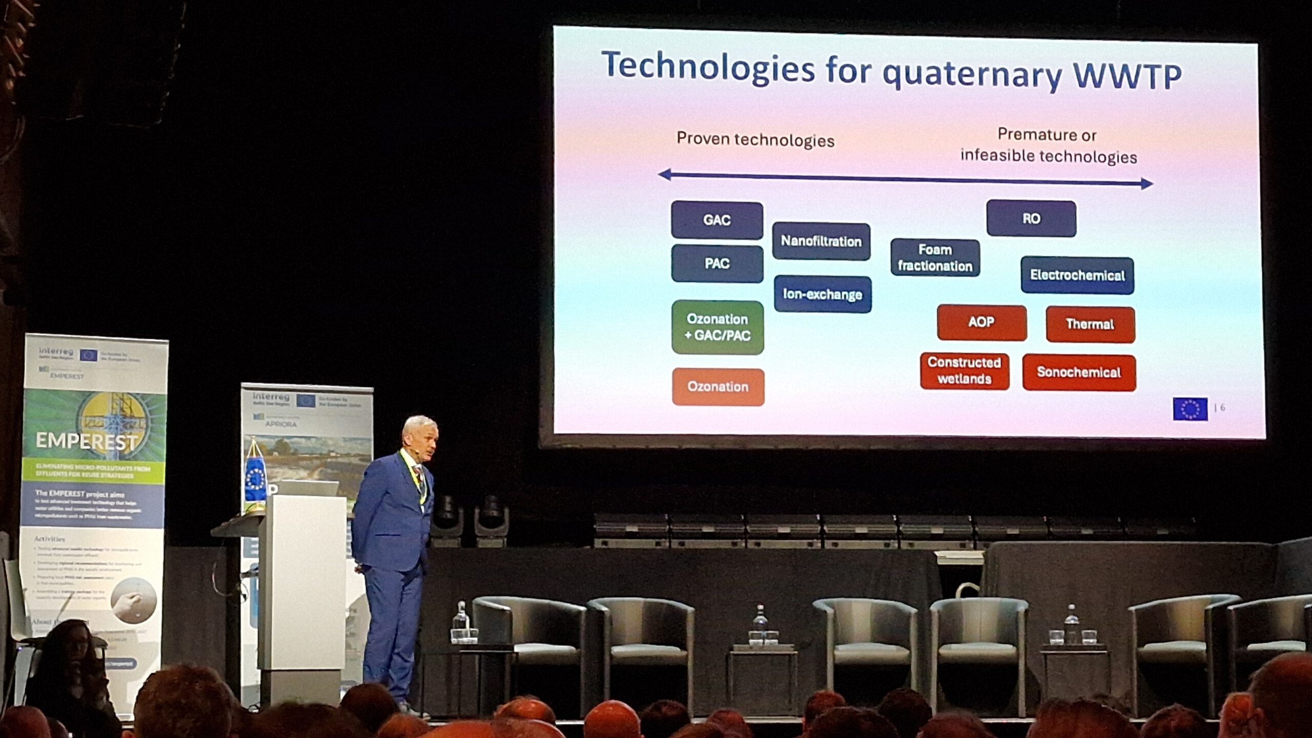 The conference “The Future of Water in the Changing World: Innovative solutions against PFAS and micropollutants” gathered 169 experts from across sectors. Organized by the EMPEREST and APRIORA projects, the event addressed the pressing challenges of the revised Urban Wastewater Treatment Directive, which introduces strict requirements for removing micropollutants from wastewater. These changes place significant pressure on treatment plants and will trigger major investments in quaternary treatment upgrades. The European Commission estimates that meeting these requirements across Europe will cost €28.6 billion by 2040, including €9 billion specifically for micropollutant removal.