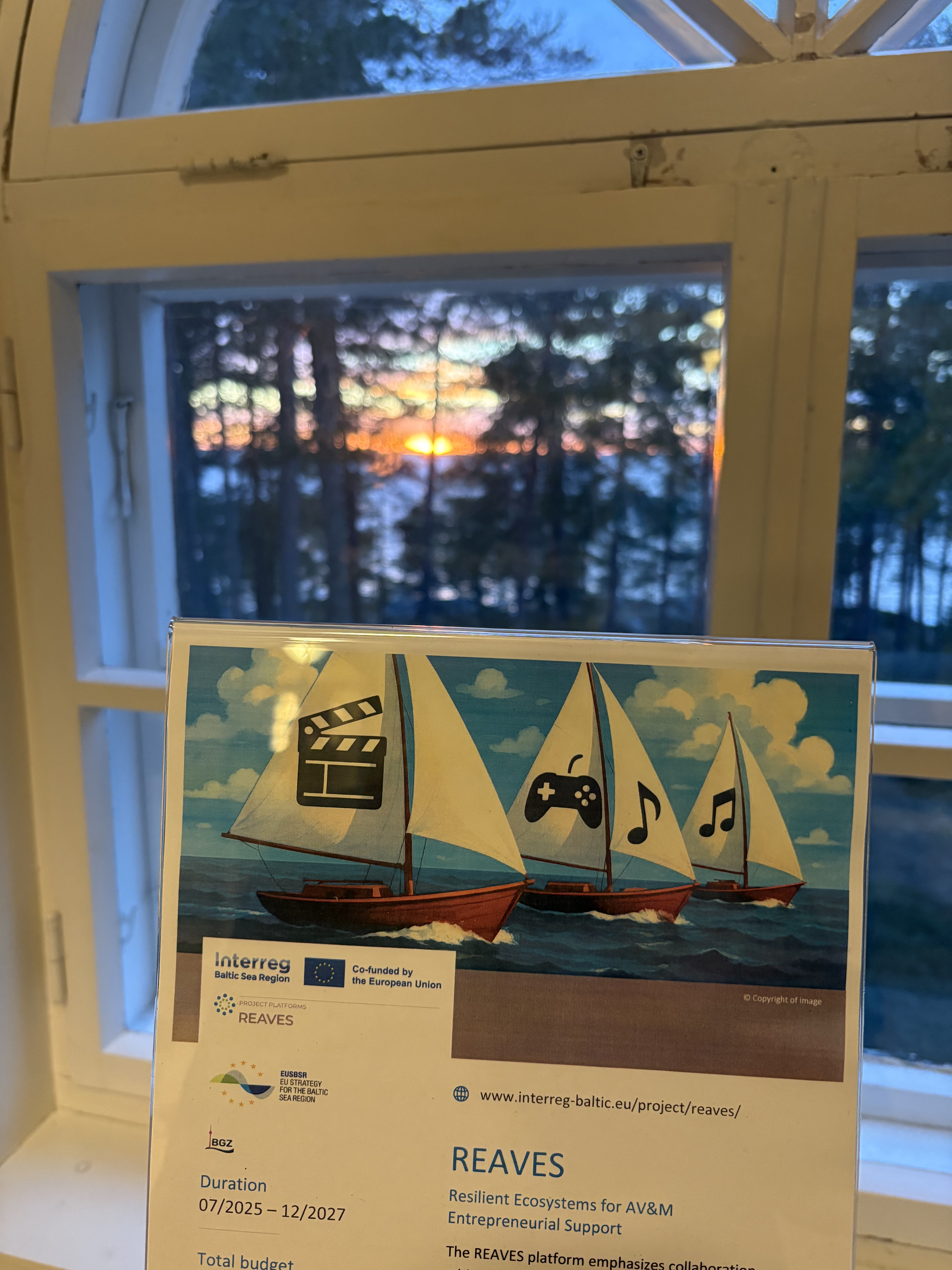 REAVES builds on the outcomes of 22 previous projects, such as BSG-Go!, MI-RAP, Nordic Music Creators, Distance LAB, CDG Booster, Fair Game, Strategies, AV Growth, TAB, South Baltic Creative Cluster, Active Creative, Qvarken Game Lab, Indie Plaza, BSGI, BGI, Kvarken Film Network, Qvarken Game Industry, Professionalizing European Game Developers and X Border Support 4 Games. The project is co-funded by the EU and Interreg Baltic Sea Regions, and has 14 partners from seven countries.