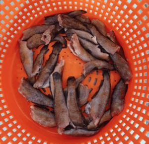 To overcome these challenges, Sofia von Scheele at Skillinge Fisk’s processing facility, together with Hannes Hall from Marine Centre Simrishamn, tested a new type of processing machine to create mince from round goby fish. The fish, which came out of a freezer, had to be larger than 12 cm and was thawed, gutted and headed before performing the tests.