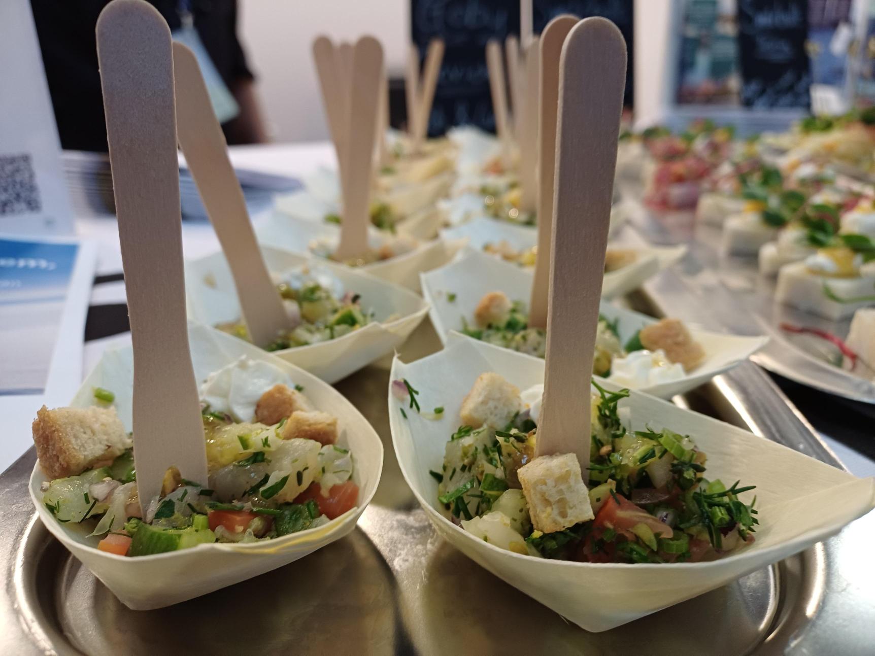 And what better way to start the conversation than through food? At the booth, visitors were invited to taste a range of creative round goby dishes prepared by project partners Kalmar Municipality, Rosbergs Fisk, Skillinge Fisk-Impex AB and Marint centrum. Curious visitors lined up to sample a refreshing round goby ceviche by Rosbergs Fisk and a delicate round goby terrine presented by Kalmar Municipality, both proving that this small coastal fish has big culinary potential.