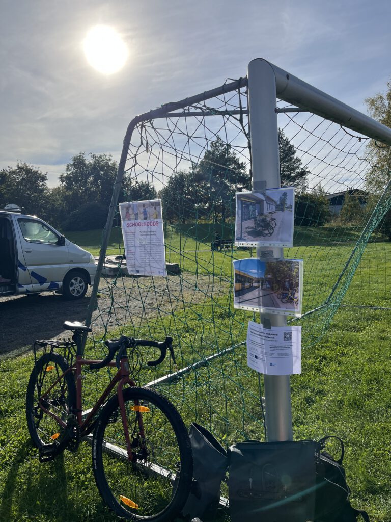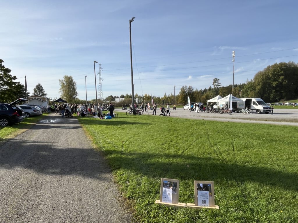 On the Pääskyvuori Day, the City of Turku shared a questionnaire on the mobility hub and had conversations with the inhabitants of the area. The event area had posters explaining the project and flyers equipped with a QR code for a questionnaire. A similar approach was taken for both SUMPs for BSR and Schoolhoods projects. The possibility of discussing the pilots of the area and answering the questionnaires was promoted throughout the event by the organisers through announcements, and flyers were offered to people.