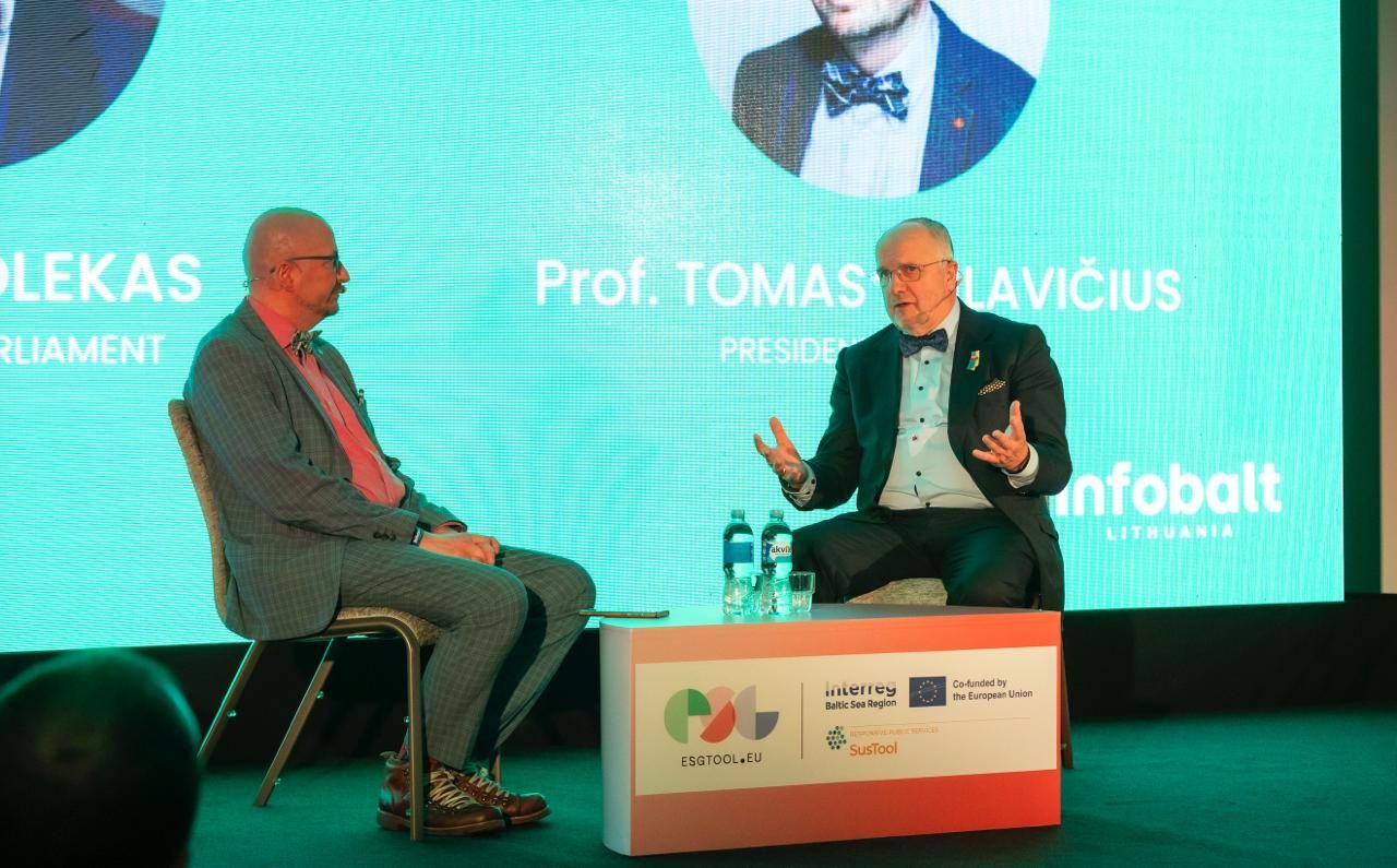 On 25 November 2025, INFOBALT organized a SusTool project roundtable discussion – part of the Interreg Baltic Sea Region programme. The event was held as a segment of a broader sustainability and technology conference, bringing together policymakers, technology developers, and business representatives to discuss how digital tools can accelerate sustainability transformation, enhance competitiveness, and increase resilience to changing regulatory and environmental challenges.